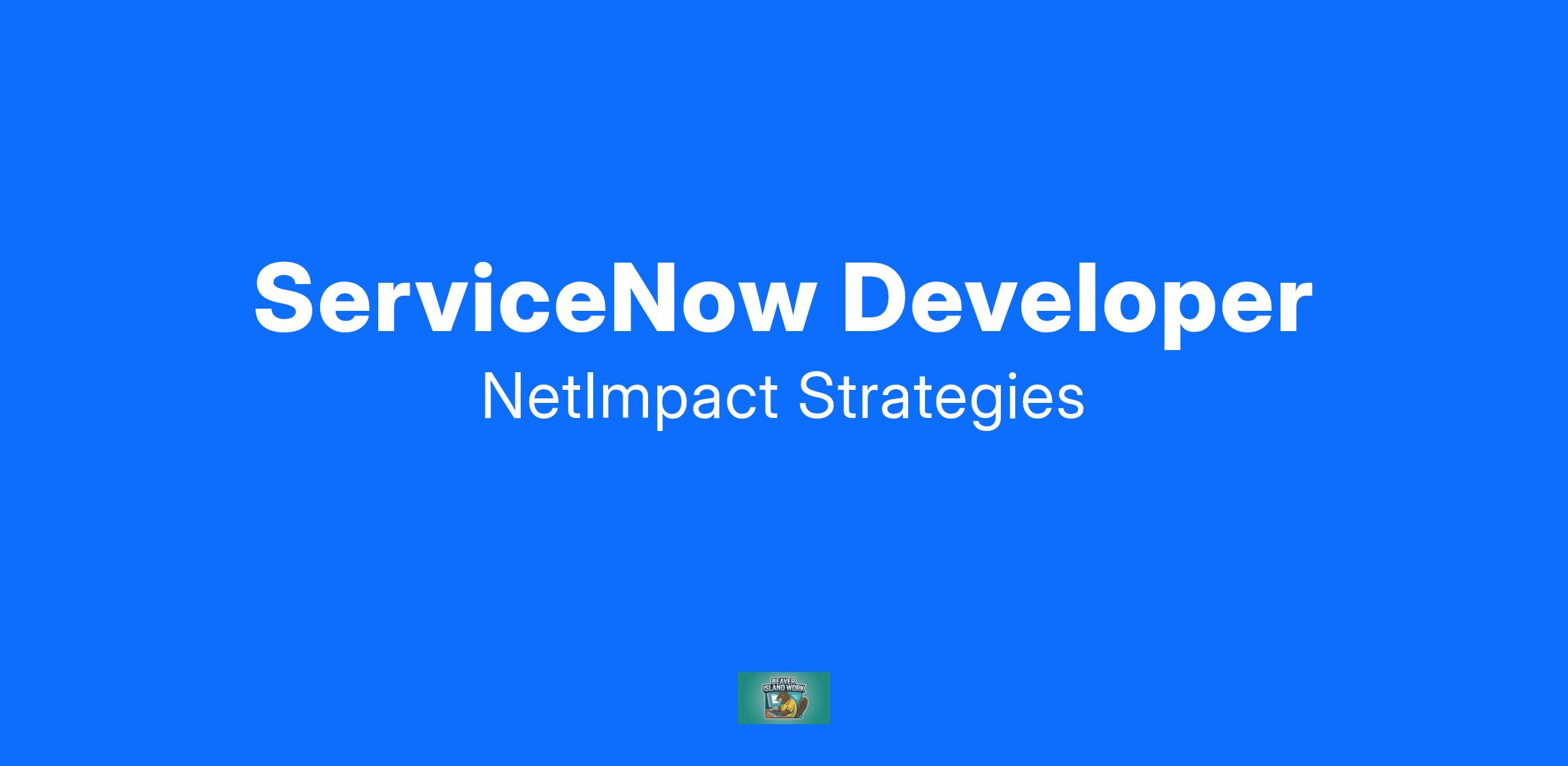 NetImpact Strategies is seeking a ServiceNow Senior Developer to join our talented IT Services team. This is a 100% remote position. The successful candidate will have fluency in ServiceNow development principles that enables them to work with developers and key stakeholders to develop enterprise business solutions for our customers that leverage ITIL processes and best practices. The successful candidate will be part of a team responsible for the maintenance and enhancement of the ServiceNow platform and must act with a sense of urgency and adapt to changing priorities. This position requires a full-time commitment.